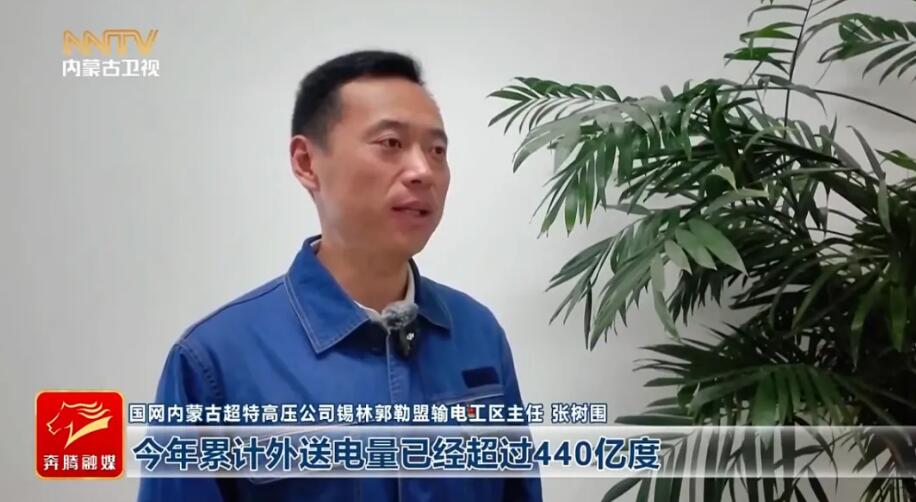 国网内蒙古超特高压公司锡林郭勒盟输电工区主任 张树围 锡林郭勒盟地区特高压电网今年累计外送电量已经超过440亿度,其中绿电148亿度,占比33.6%。