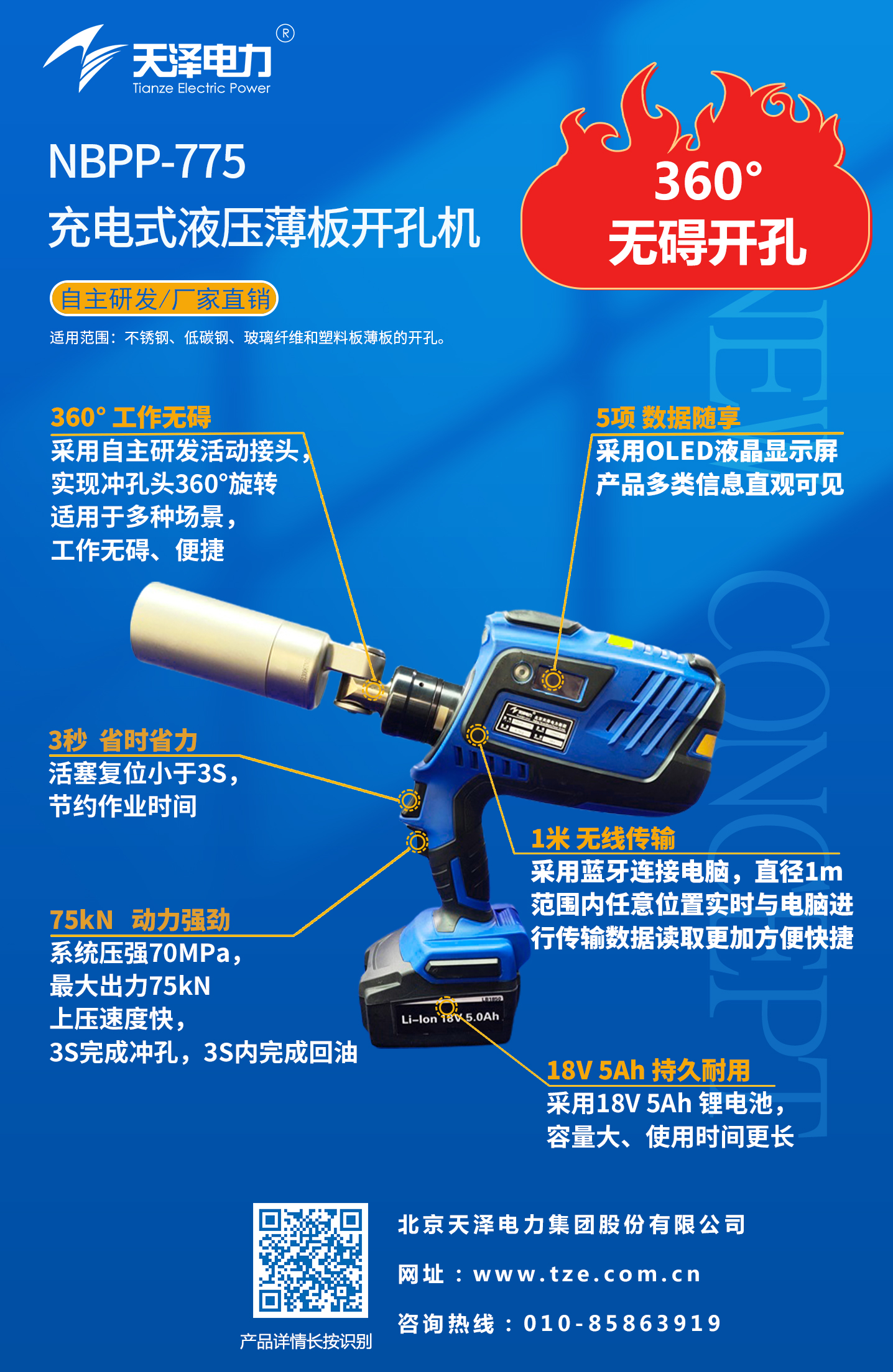 ag亚娱官方网站入口的解决方案:针对上述痛点,天泽电力为您推荐一台自主研发的充电式液压薄板开孔机--nbpp-775,独特的功能设计,一机解决你所有问题。它适用于不锈钢、低碳钢、玻璃纤维和塑料板薄板的开孔!。