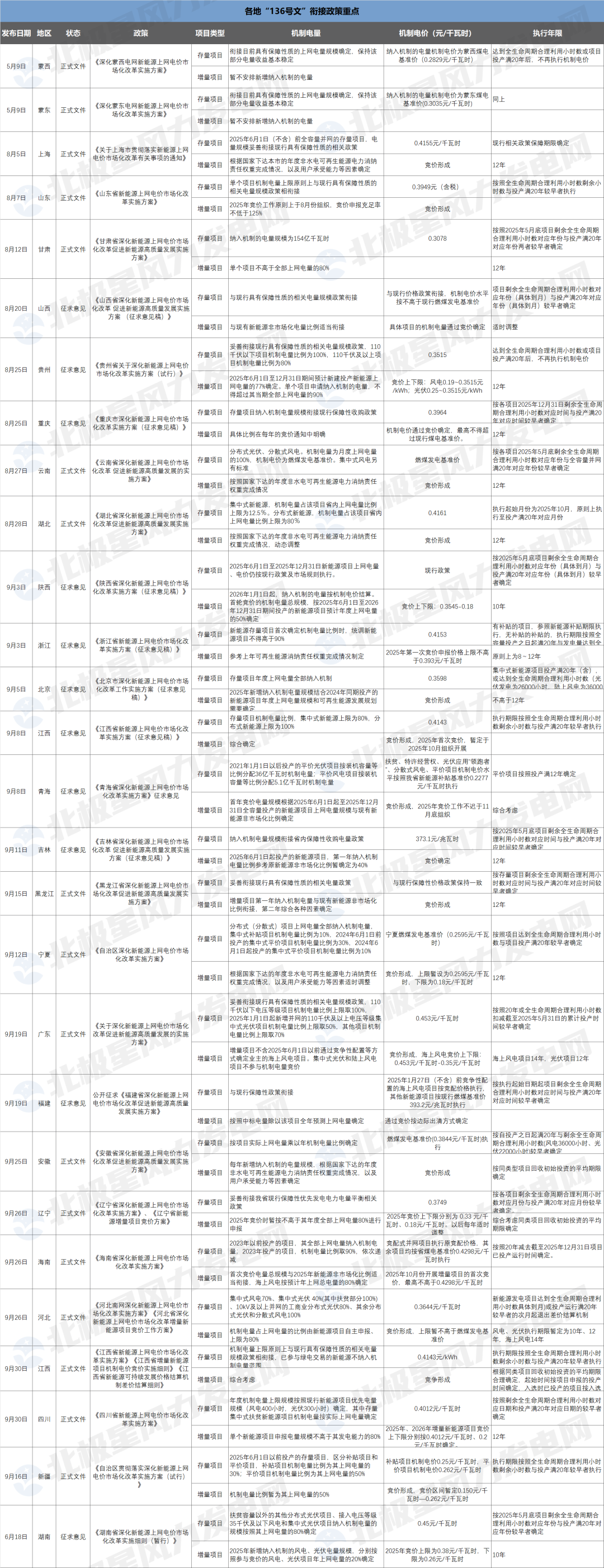 除上述省区市外,多地已陆续发布了“增量新能源项目的机制电量竞价通知”,明确了2025年6月1日至2026年上半年乃至全年的新能源增长规模和电价基本盘,接下来将会有更多增量项目的机制电价公布出来。