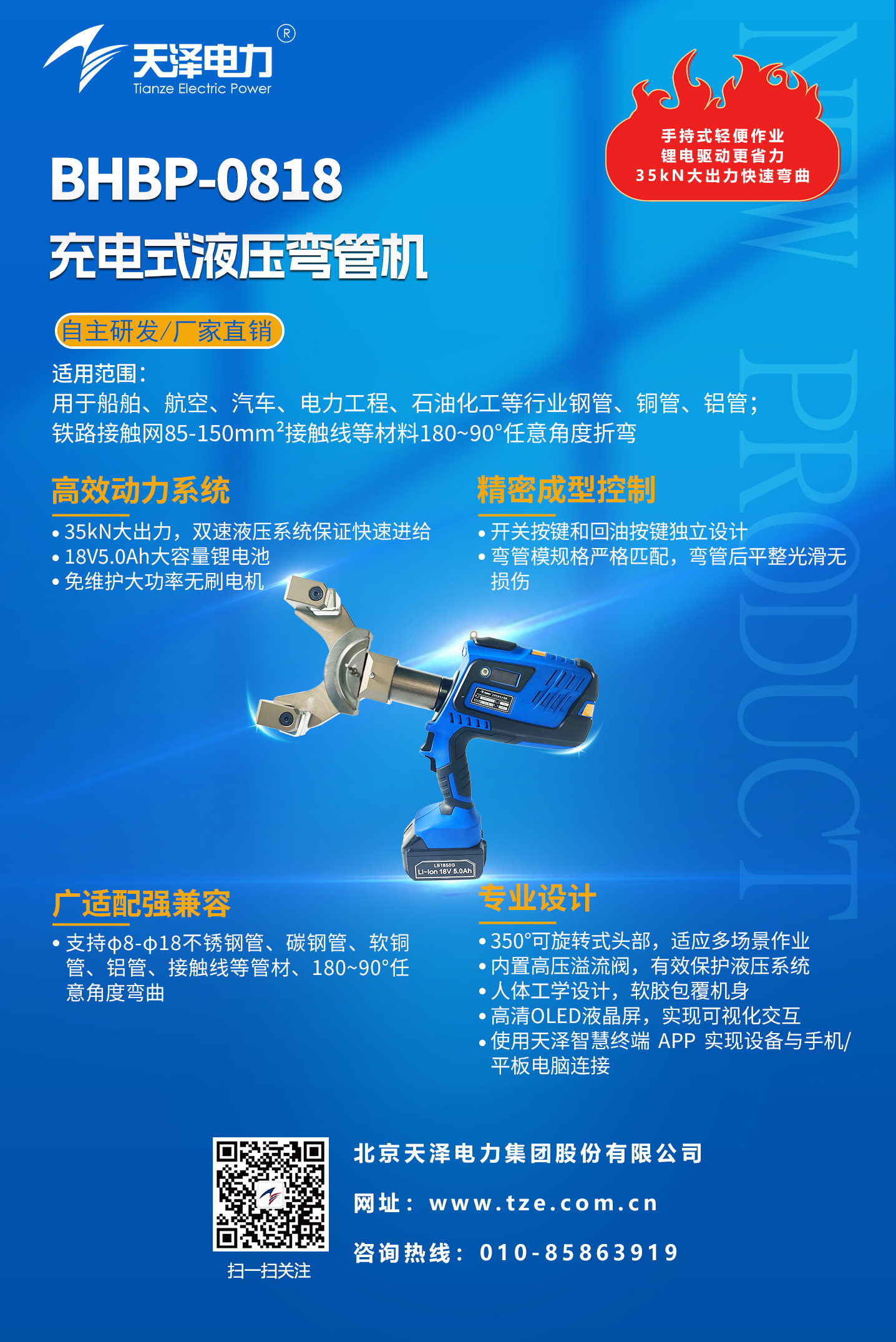 ag亚娱官方网站入口的解决方案:正是在这样的行业背景下,bhbp-0818充电式液压弯管机应运而生。作为一款手持式无线弯管设备,它专为φ8至φ18的不锈钢管、铜管及接触线等材料折弯作业,以“轻量化、智能化、多功能”为核心理念,解决了传统设备在便携性、适用性与智能化方面的不足。